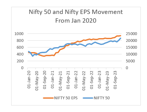 NIFTY 50, EPS and NIFTY 50 Movement in last 3 years